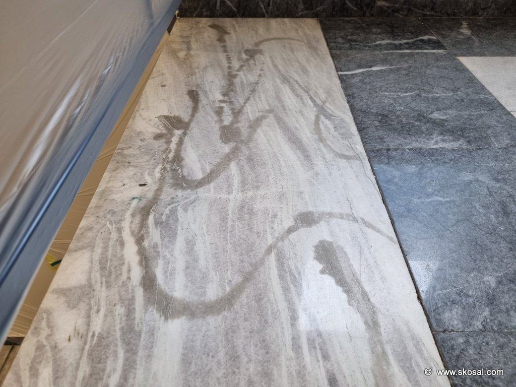 Obnova kamnite površine stopnišča – stopnic in podestov. (Objekt Avtocommerce Ljubljana) Postopek obnove je strojno diamantno brušenje in poliranje kamnite površine stopnic in podestov. Prve slike prikazujejo poškodbe na kamnu, ki so nastale tekom let zaradi uporabe. Naslednje fotografije prikazujejo uspešno popravilo in končni izgled. Površina zaščitena z impregnacijskim zaščitnim sredstvom, ki podaljšuje življenjsko dobo obdelave, ki je bila izvedena na površini marmorja in ščiti pred vstopom umazanije v strukturo.